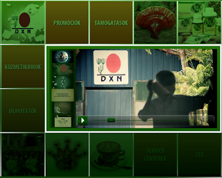 A weboldal középen egy videó ablak található, melyben hat DXN videó indítható el. Az ismert DXN filmek mellett nagy örömmel három új videót fedeztem fel: egy a DXN cégről, Pecsétviaszgombáról (Ganoderma lucidum) és az online üzletépítésről kaphatunk professzionális képet. A több mint 2 perces filmek profi kép és hangminőségben magyarországi jelenetekkel készültek el természetesen magyar hanggal. Első megtekintésre nagyon meggyőzőek!